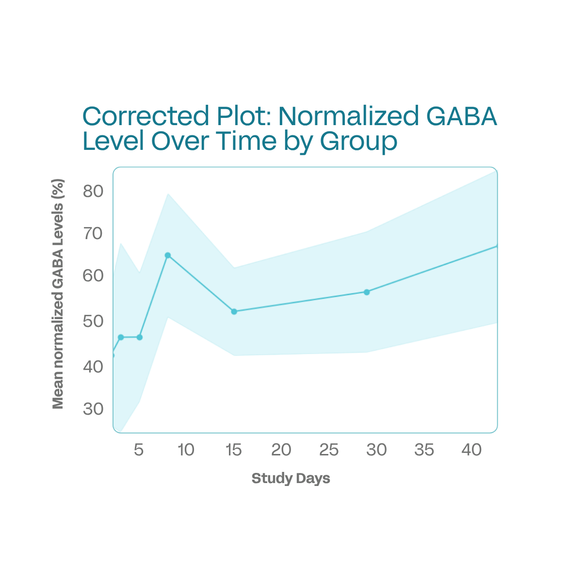 GABA levels increased rapidly after the first week, and were relatively stable through week 6 (p=0.04), highlighting the ability of LP815 to create a GABA factory in the gut, resulting in sustained GABA levels.